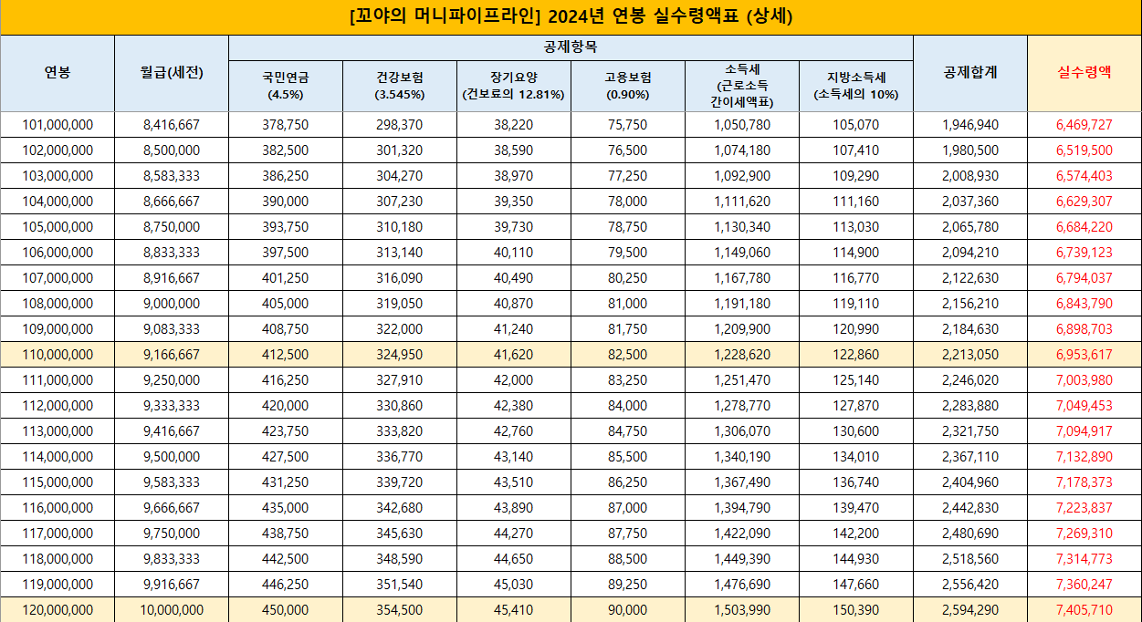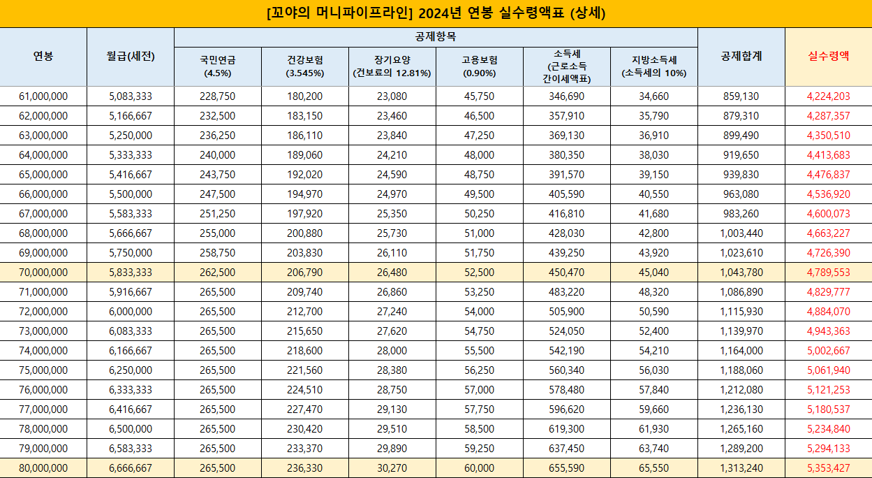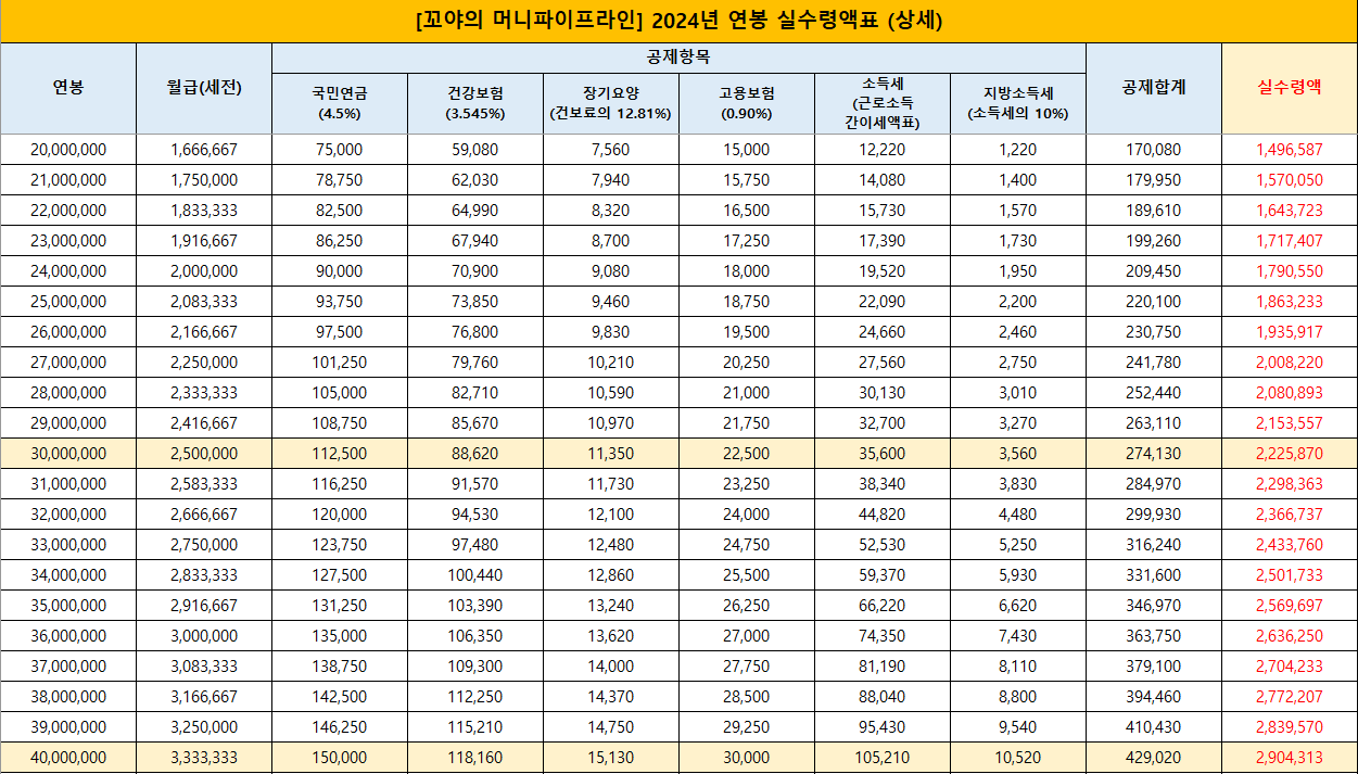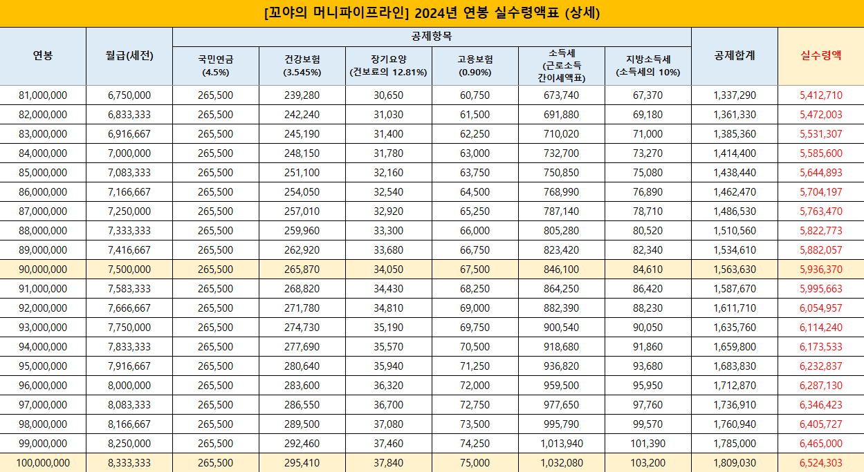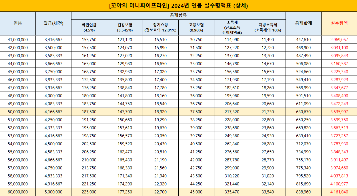 이를 참고하여 올해부터 받게 될 변동된 실수령액을 미리 확인해보시길 바랍니다.