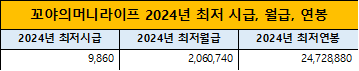 - 2024년 최저임금은 9,860원이므로, 최소연봉은 2,500만원부터 시작됩니다.