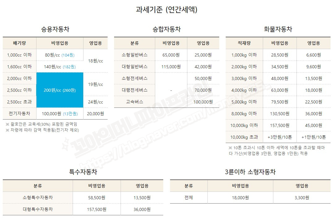 1600cc 초과 중형 이상급 차량은 cc당 200원