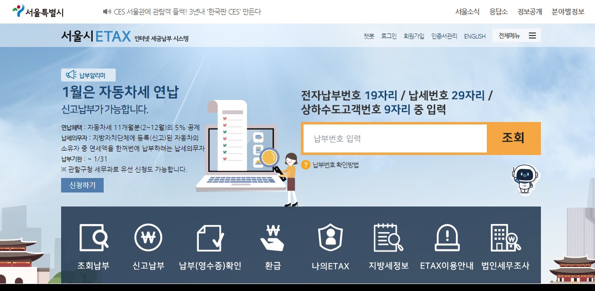 자동차세 연납 신청을 하실 때는 서울시민은 서울시 eTax 홈페이지에서,