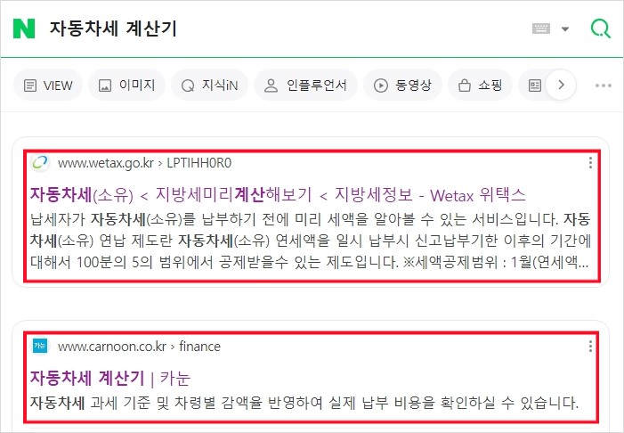 자동차세 계산기는 위 두곳에서 해보세요.