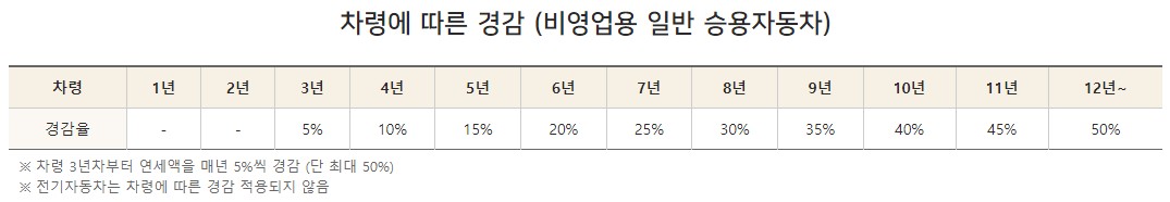 신차 구입 후 3년차 부터는 해마다 5%씩 경감이 되어